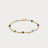 18 kt guld armbånd med turmaliner og akvamariner i forskellige nuancer. Armbåndet er 18 cm langt.